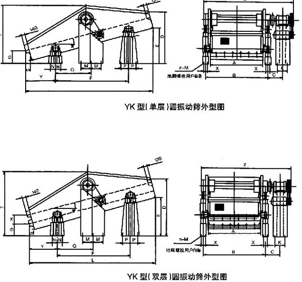 YK型圓振動篩技術性能及外形尺寸